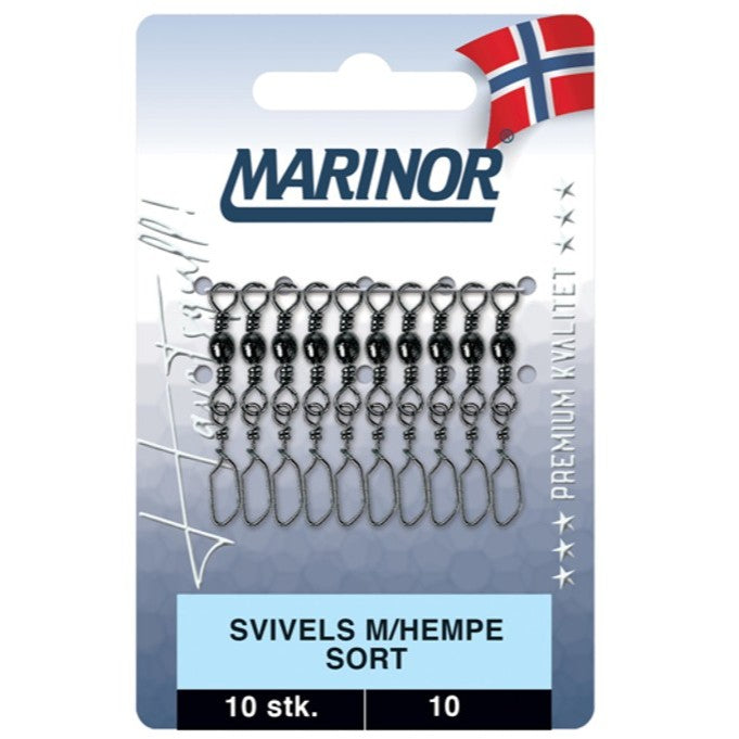 Marinors klassiske svivels m/hempe i sort montert med Marinors solide sluklås.
