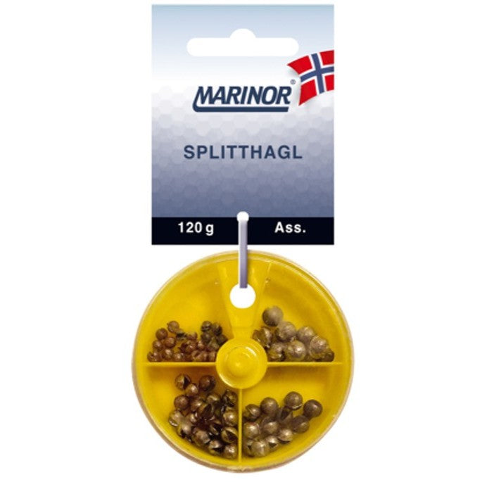 Splitthagl som klemmes enkelt og greit på sena for vekting av agn, sluk og spinnere. De er lette å montere og skånsomme mot senen. Praktisk oppbevaringsboks.